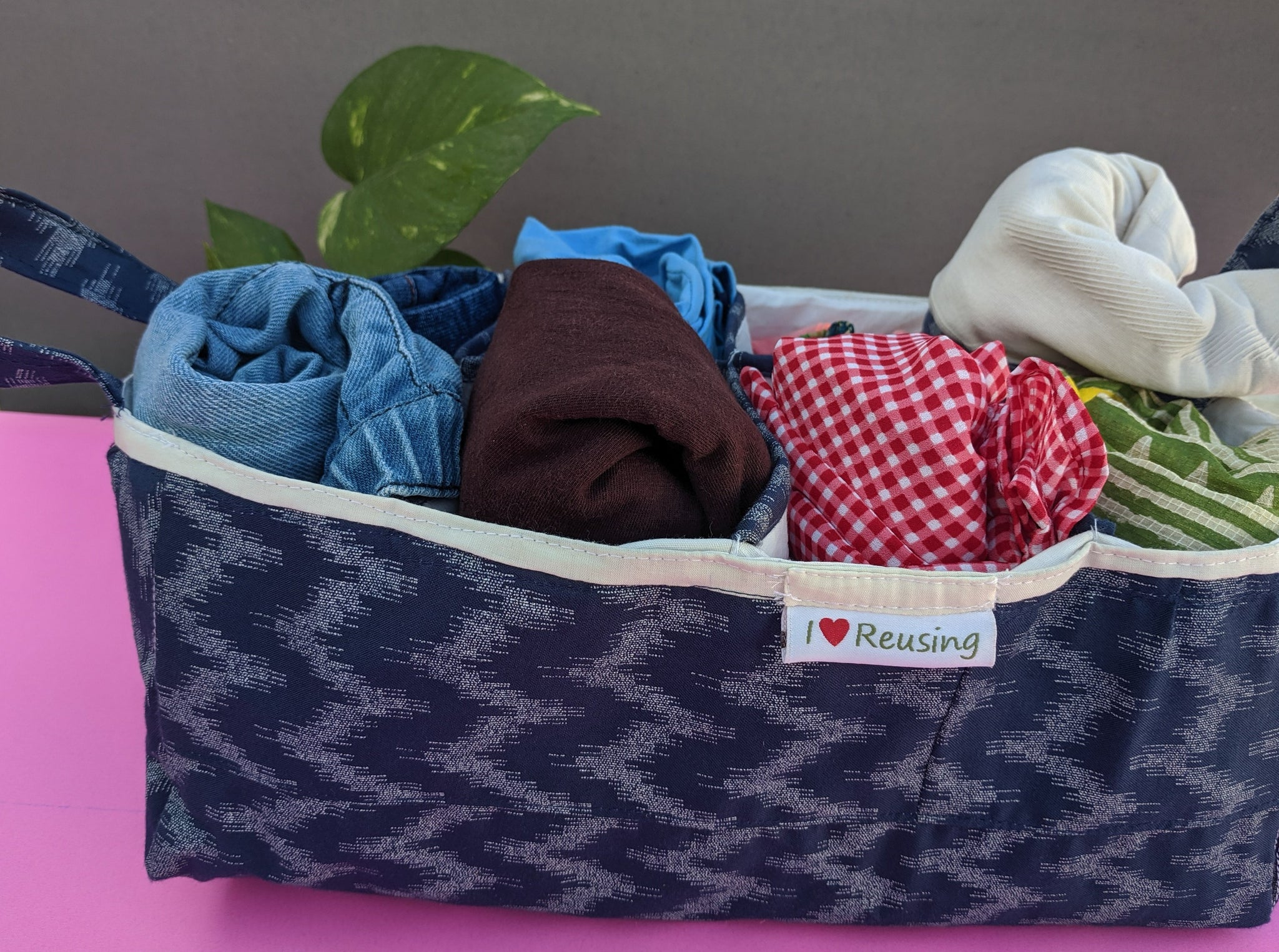 Product displayed is handmade with fabric scrap.