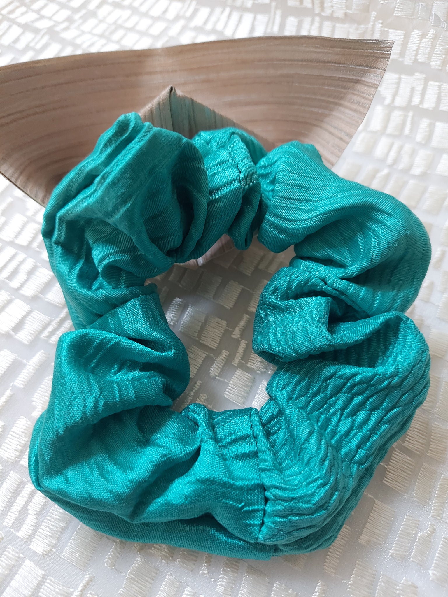 Teal color in different textures gives it an extra emphasis for the teal scrunchie.