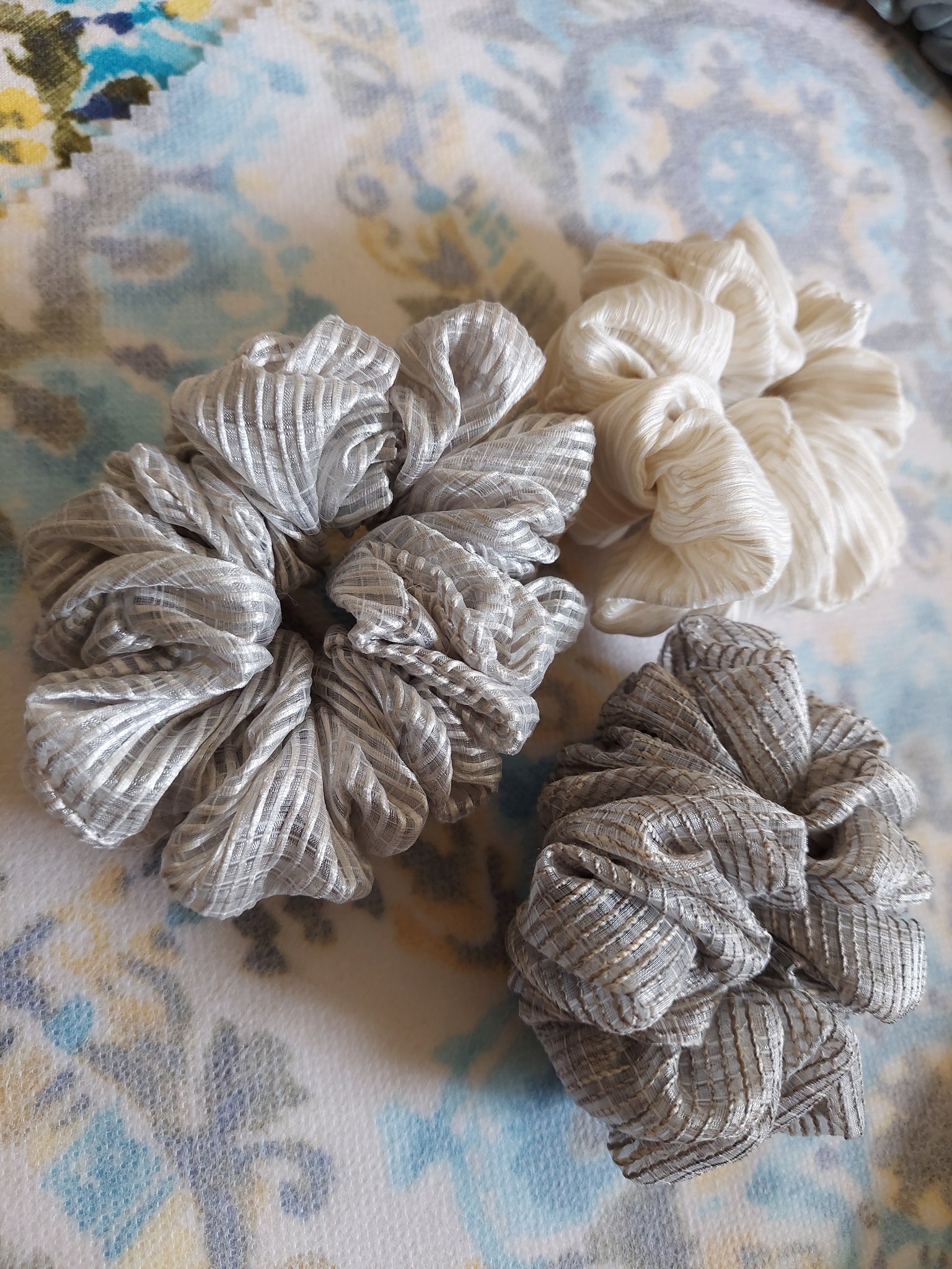 Simple stripes to give an extra glossy look on these scrunchies can add to your festive look.