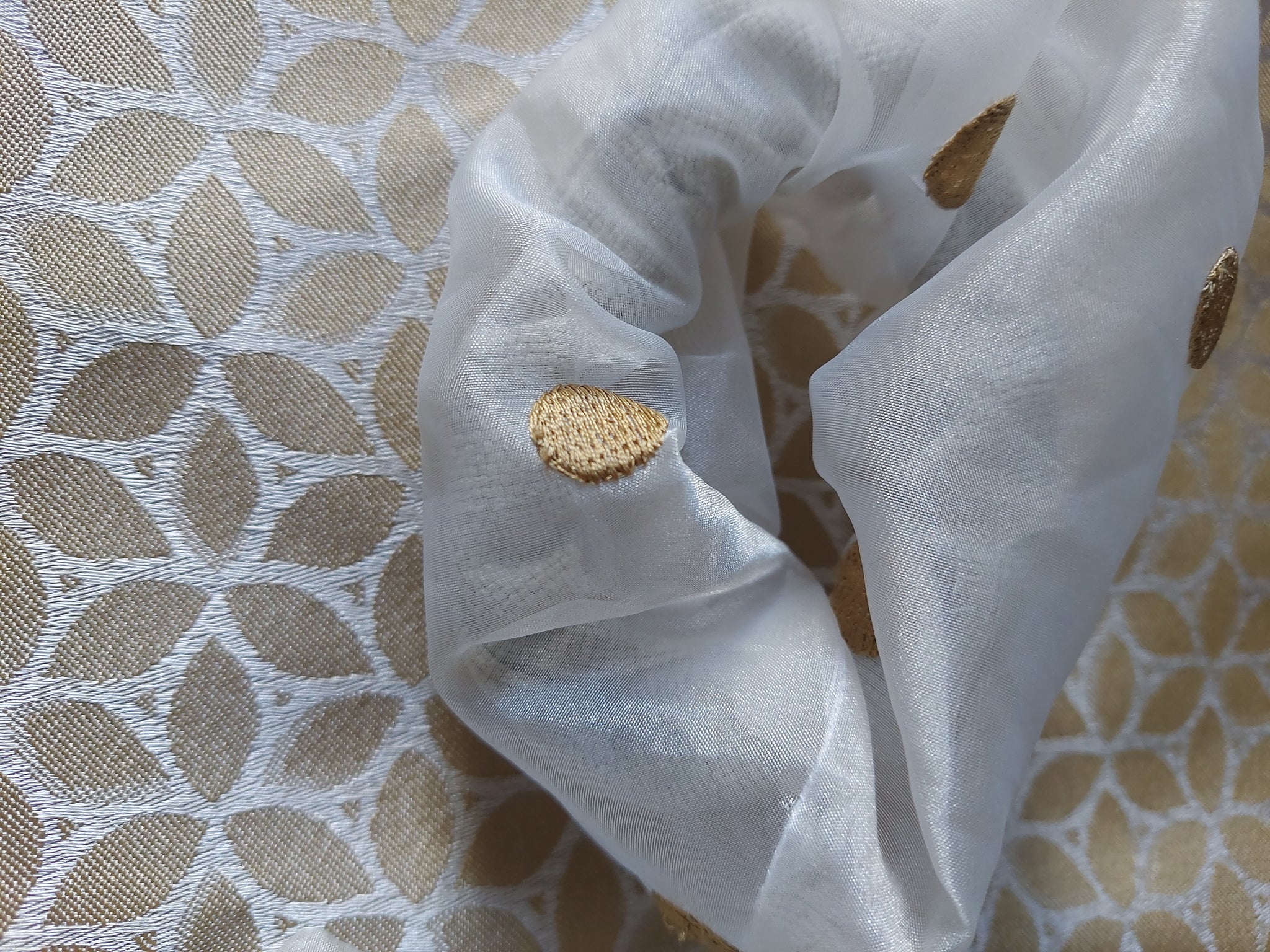 These scrunchies have 2 layers. Inside layer is made of thick lenin cloth, outside layer is made of delicate organza cloth.